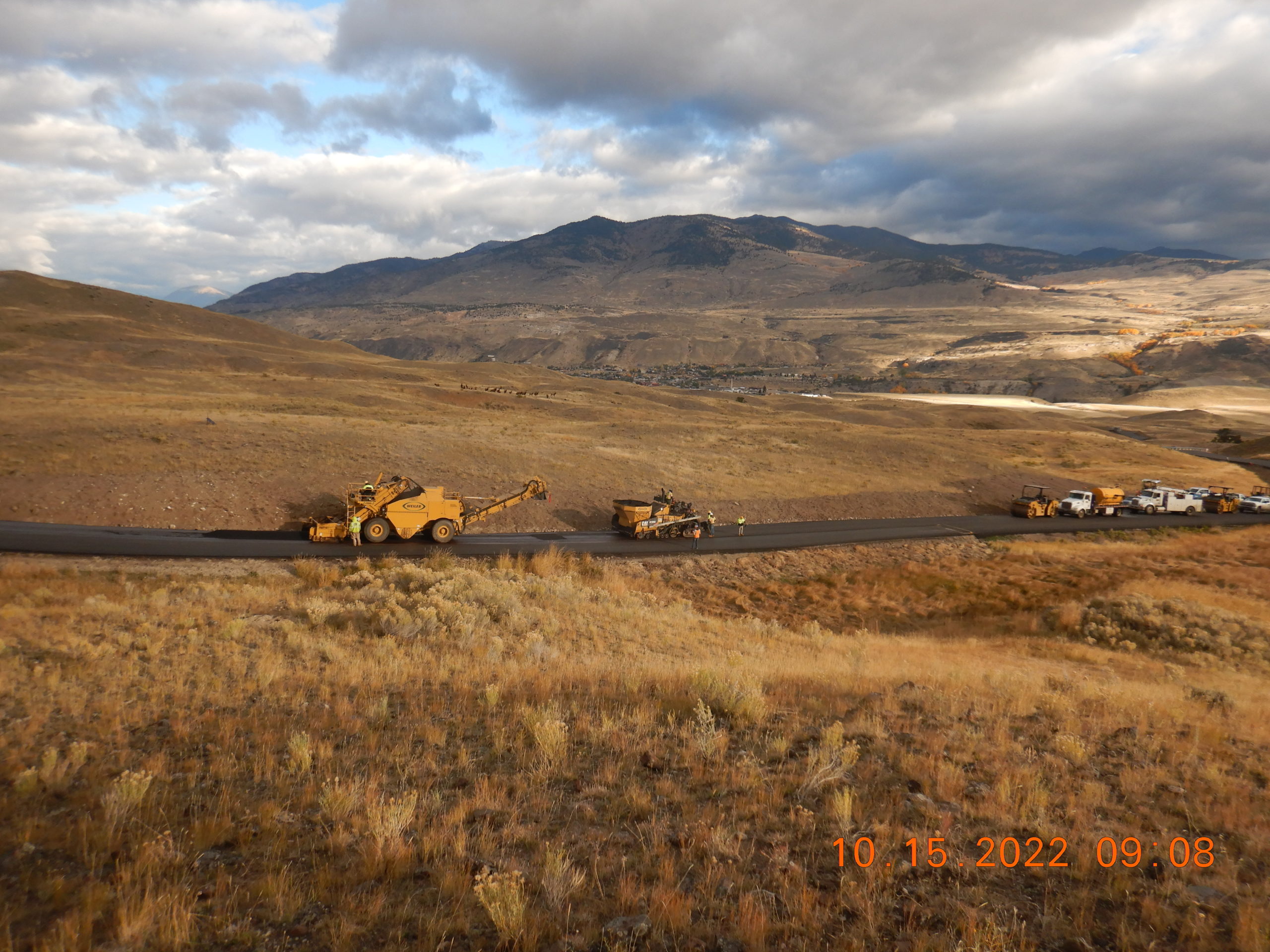 Since June, HK Contractors have worked tirelessly to rebuild the washed-out roadway and incorporate corridor improvements. This project consisted of reconstructing 4 miles of new road, excavating 80,000 cubic yards, and placing 33,990 tons of roadbase and 15,500 tons of HMA. Crews incorporated a 14,000 sq. ft stabilization wall, and a 21,000 sq. ft. soil nail wire mesh slope to ensure stability throughout the corridor. At peak performance, there were approximately 8 different companies with 100 employees working on different aspects of the project. This project was completed between July 11 and November 4. This corridor now provides connectivity from Yellowstone and Gardiner, Montana, and ensures safe passage for motorists traveling through the area.